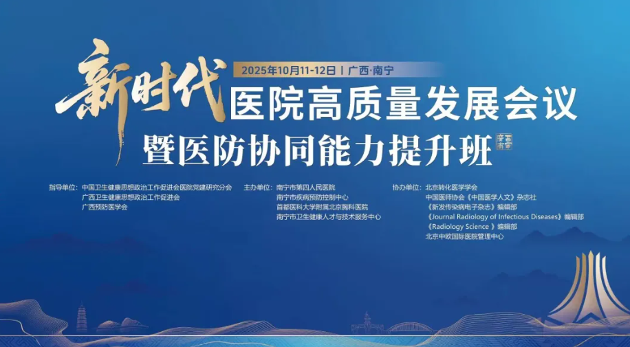 10月10日至12日,新时代医院高质量发展会议暨医防协同能力提升班在南宁举办。本次活动由南宁市第四人民医院联合南宁市疾病预防控制中心、首都医科大学附属北京胸科医院、南宁市卫生健康人才与技术服务中心共同主办,北京中欧国际医院管理中心协办。在中国卫生健康思想政治工作促进会医院党建研究分会、广西卫生健康思想政治工作促进会、广西预防医学会指导下顺利召开。